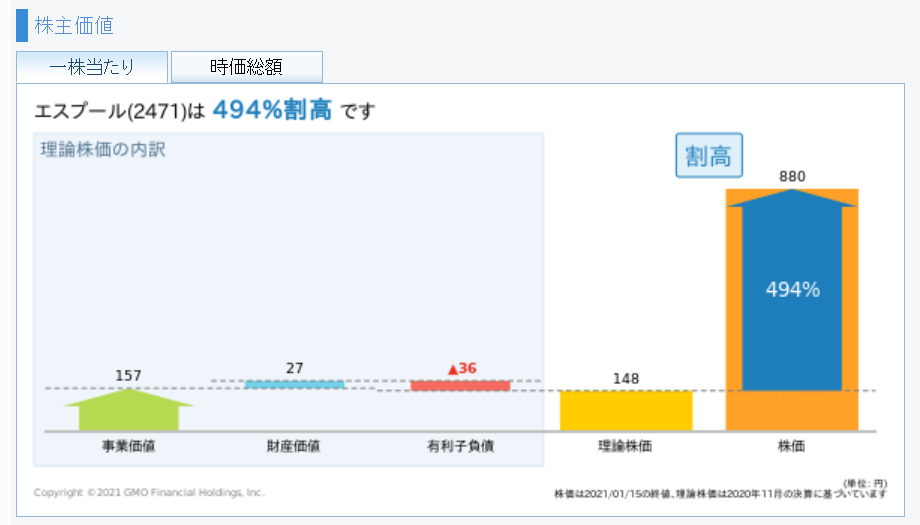 2020年11月期のROEが42.17%、ROAが15.83%と成長性は有望な一方で、自己資本比率が39.4%と低い点はやや気になる(図表外)。PER49.71で理論株価よりも割高なので、やや過熱感があるともいえるが、成長株としてみれば上値の余地はある。1/16時点で信用倍率7.19倍である。今後やや上値を重くする可能性あるが、この程度の信用倍率は他銘柄でも見られる。